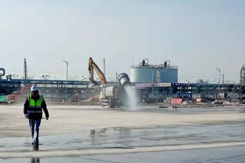 揚(yáng)塵措施治理到位。項(xiàng)目出入口設(shè)置車(chē)輛自動(dòng)沖洗設(shè)備及PM2.5揚(yáng)塵監(jiān)測(cè)儀,主干道,循環(huán)路全部硬化,其余部位種植綠化填充,在作業(yè)過(guò)程中定時(shí)進(jìn)行噴灑,現(xiàn)場(chǎng)設(shè)置霧炮機(jī),力求無(wú)土化施工,為現(xiàn)場(chǎng)作業(yè)工人營(yíng)造了舒心、清潔的工作環(huán)境。